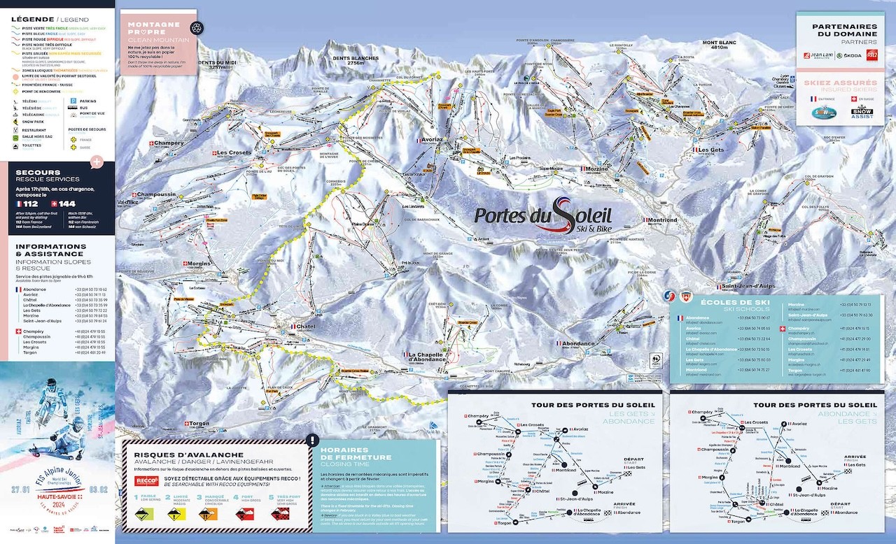 Het skigebied verbindt twaalf dorpen, elk met een eigen karakter. Avoriaz is modern en autovrij, Morzine straalt charme en traditie uit, terwijl Les Gets juist gezinsvriendelijk is. Aan de Zwitserse kant bieden Champéry en Les Crosets een rustige, authentieke sfeer.