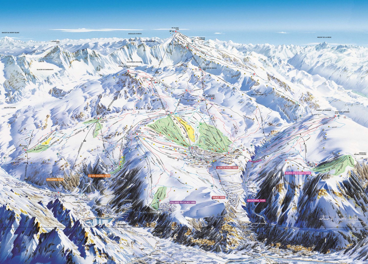 Het skigebied biedt 250 kilometer aan pistes, variërend van brede blauwe afdalingen tot de beroemde 16 kilometer lange Sarenne-piste – de langste afdaling ter wereld. Daarnaast zijn er 84 liften, een funslope en diverse freeridezones. Ook rodelen, sneeuwschoenwandelen en paragliden behoren tot de mogelijkheden.