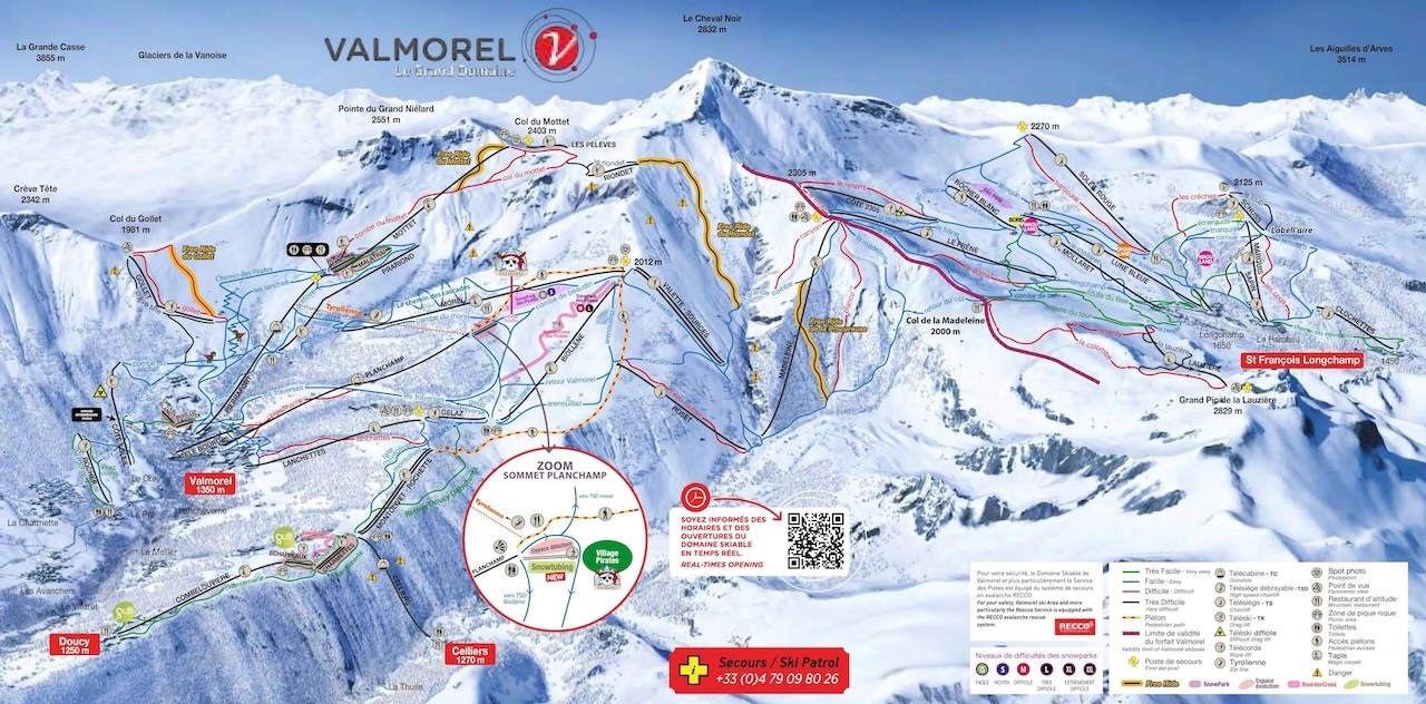 Le Grand Domaine biedt 165 km aan pistes, verdeeld over 103 afdalingen. De langste afdaling is ruim 6 km. Naast skiën kun je er ook langlaufen, rodelen, sneeuwschoenwandelen en paragliden. De combinatie van sportieve mogelijkheden en rust maakt het gebied geliefd bij gezinnen en sportieve stellen. De verbinding tussen Valmorel en St François Longchamp zorgt voor variatie: bossen, brede pistes en uitdagende afdalingen boven de boomgrens.