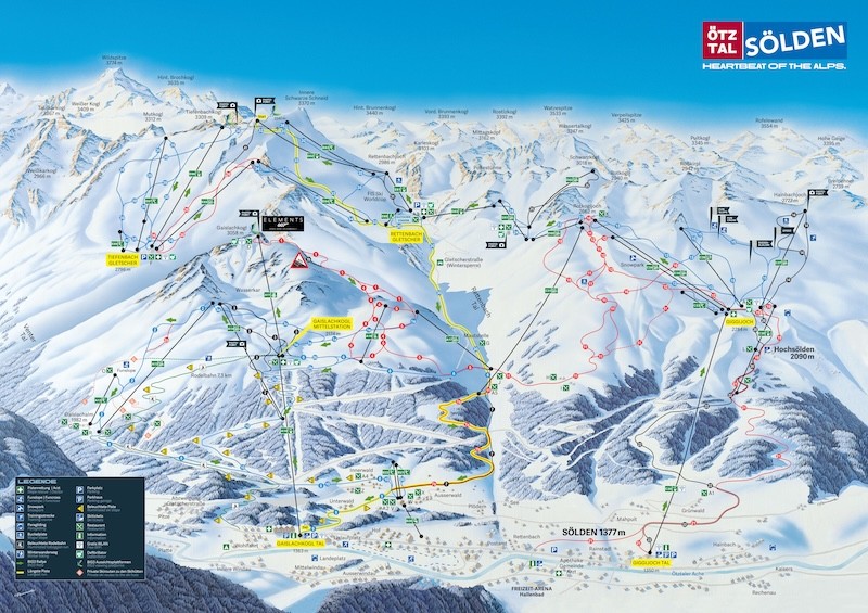 Sölden is zeer sneeuwzeker dankzij de Rettenbach- en Tiefenbachgletsjer. Skiën kan doorgaans van september tot april. Dankzij uitgebreide kunstsneeuwinstallaties blijven ook de dalafdalingen in topconditie.